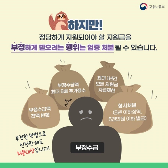 하지만! 정당하게 지원되어야 할 지원금을 부정하게 받으려는 행위는 엄중 처분될 수 있습니다.